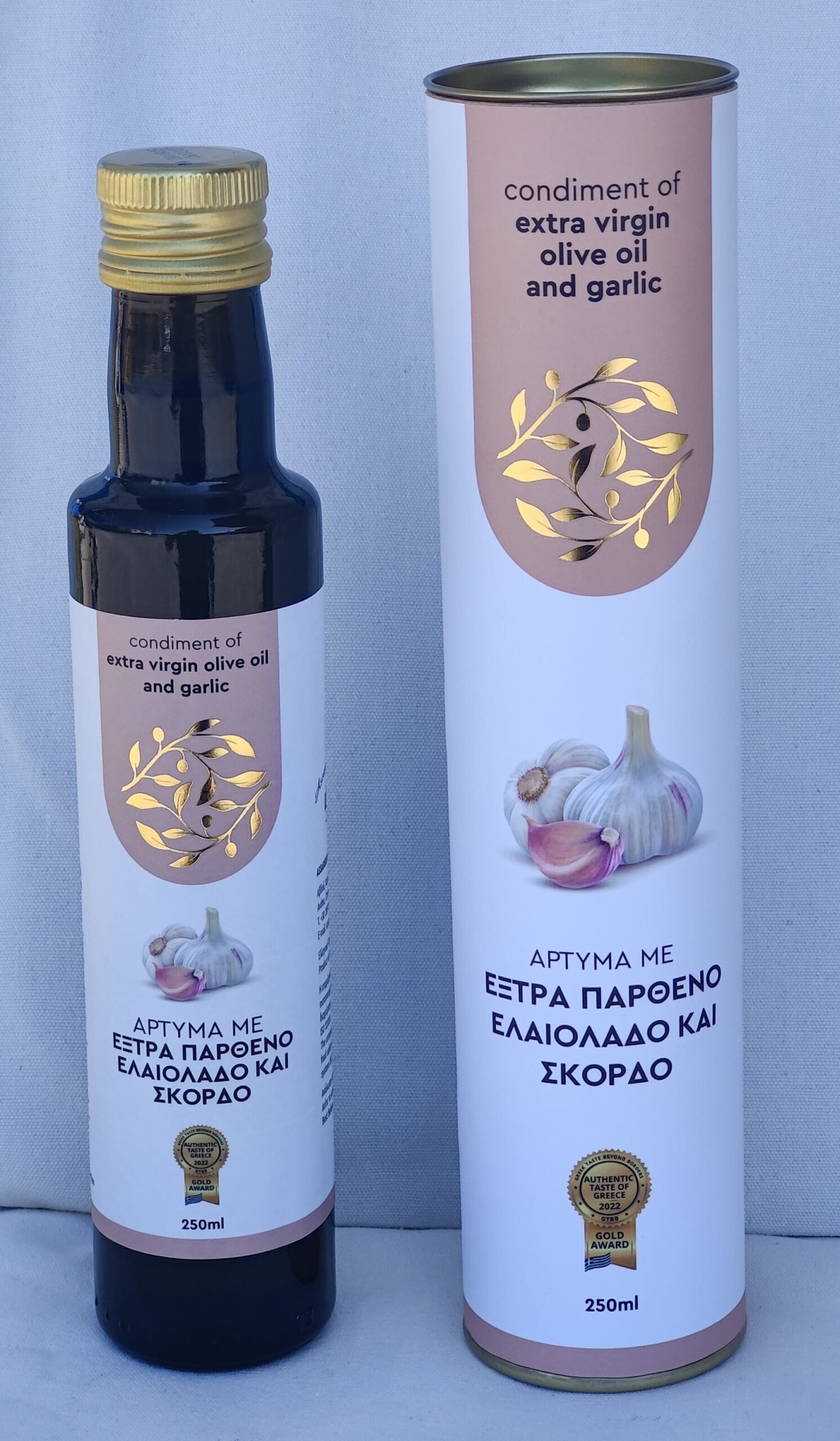 Découvrez notre huile d’olive aromatisée à l’ail. Vendu dans des bouteilles en verre de 250 ml.